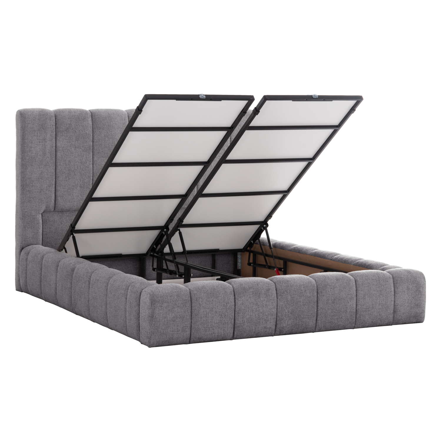 Το FB9719.22 είναι ένα κρεβάτι που θα αγαπήσετε με την πρώτη ματιά! Το κεφαλάρι είναι ψηλό με τεχνοτροπία καπιτονέ με κάθετες ραφές από «ζεστό» και εντυπωσιακό ύφασμα TEDDY σε ΓΚΡΙ χρώμα. Τα πλαϊνά του κρεβατιού αλλά και το ποδαρικό είναι ίδιας αισθητικής με το κεφαλάρι και «αγκαλιάζουν» το στρώμα! Όμως, το κύριο χαρακτηριστικό αυτού του κρεβατιού είναι ότι δεν ακολουθεί την κλασική κατασκευή με τις τάβλες του σομιέ για την στήριξη του στρώματος, αλλά αντίθετα αποτελείται από μια συνεχόμενη επιφάνεια (2 μοριοσανίδες), πάνω στις οποίες τοποθετείται το στρώμα! Επιπλέον, η κάθε επιφάνεια από μοριοσανίδα ανασηκώνεται με μεταλλικό μηχανισμό ασφαλείας με 4 αμορτισέρ και διαφανείς πλαστικές λαβές προσφέροντας έναν μεγάλο αποθηκευτικό χώρο. Σε διπλή διάσταση στρώματος 160x200 εκ. θα χωρέσει κάθε σας όνειρο!