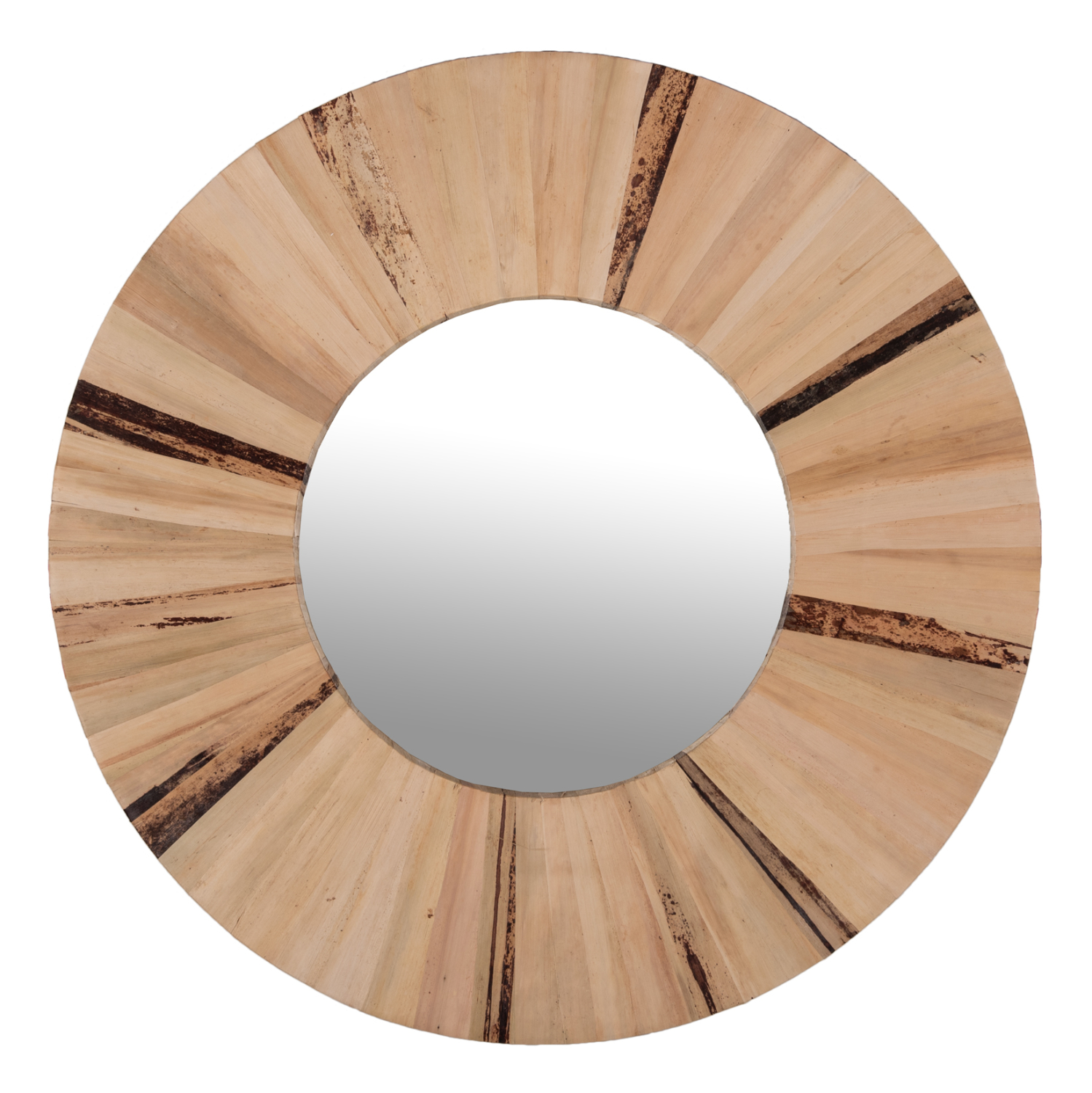O καθρέπτης FB97838 από την νέα γκάμα των προϊόντων μας, είναι πραγματικά ένα εντυπωσιακό κομμάτι στην διακόσμηση του χώρου σας! Το design του είναι μοναδικό με το αριστοτεχνικά κατασκευασμένο στρογγυλό πλαίσιο από αποξηραμένες ίνες φύλλων φοίνικα τα οποία δίνουν πλέον μια ξυλώδη αίσθηση. Οι ίνες (τα φύλλα) είναι στο φυσικό τους χρώμα και οι διαστάσεις του καθρέπτη είναι πλούσιες.