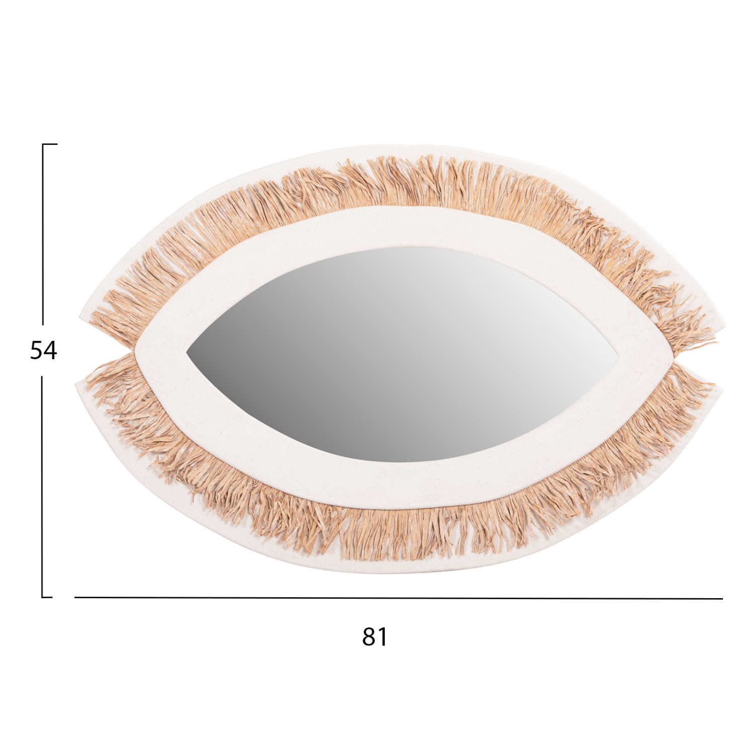 Ο καθρέπτης FB94529 είναι ένας χειροποίητος καθρέφτης τοίχου με ΥΠΟΛΕΥΚΟ σκελετό σε όμορφο σχήμα που θυμίζει μάτι, με ΜΠΕΖ ακρυλικό grass ως περιμετρική διακόσμηση. Ένα χρήσιμο διακοσμητικό για οποιοδήποτε χώρο χρειάζεστε έναν καθρέπτη. Ιδανικός για μια "νησιωτικού" στυλ διακόσμηση!