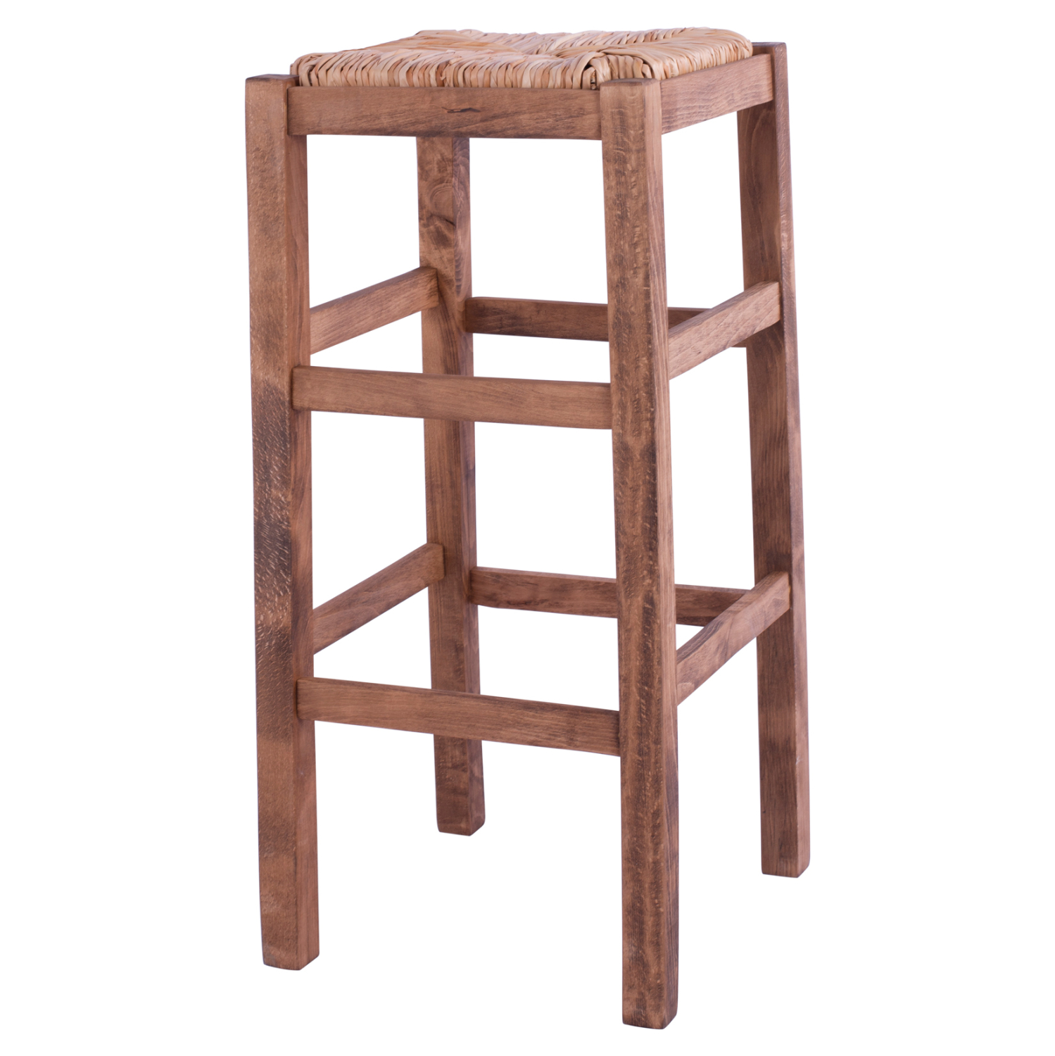Σκαμπό καφενείου χωρίς πλάτη από μασίφ ξύλο φουρνιστής οξιάς εμποτισμού καρυδί και ψάθα.