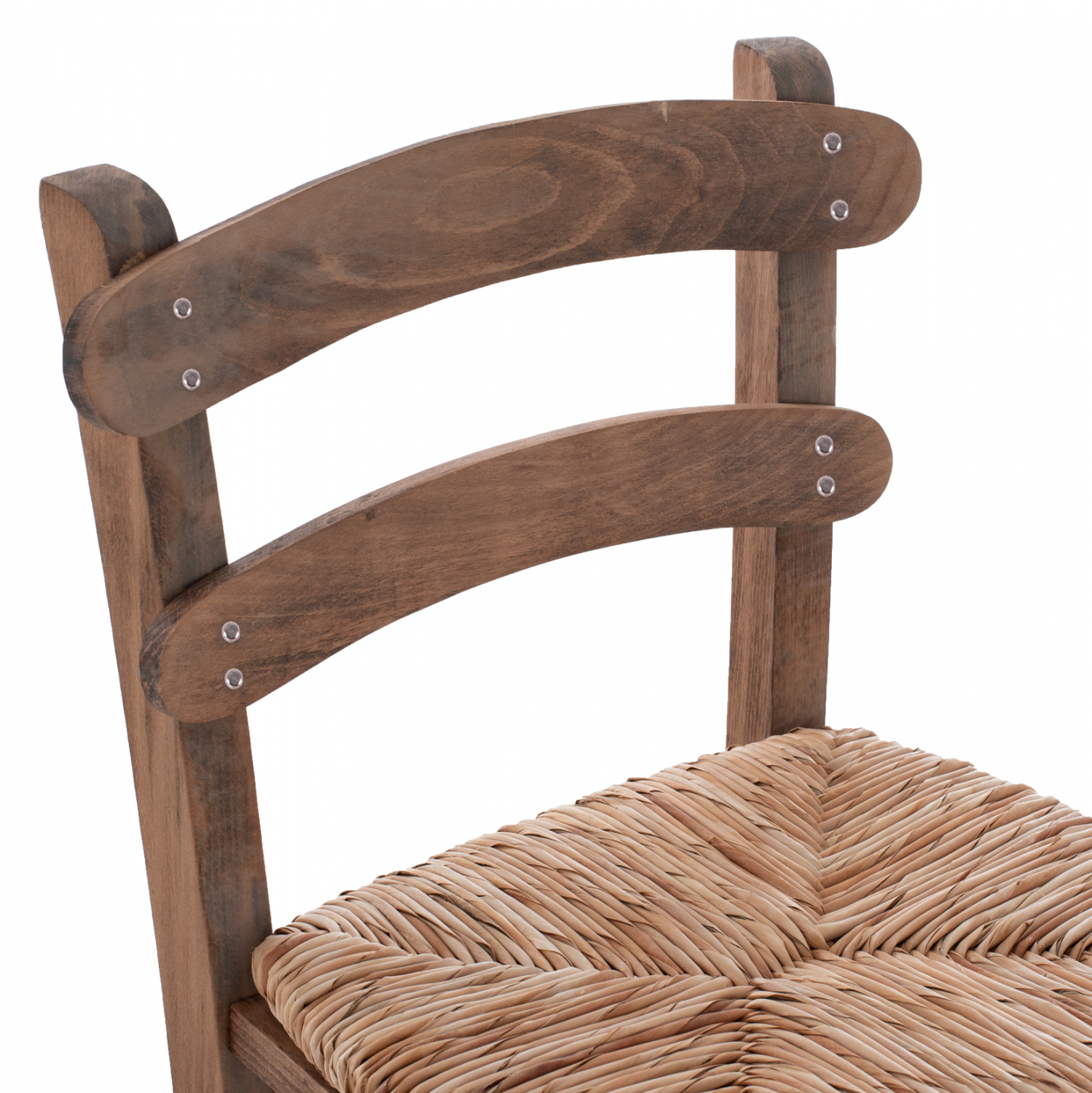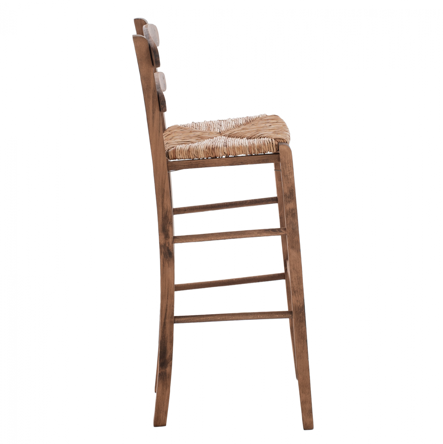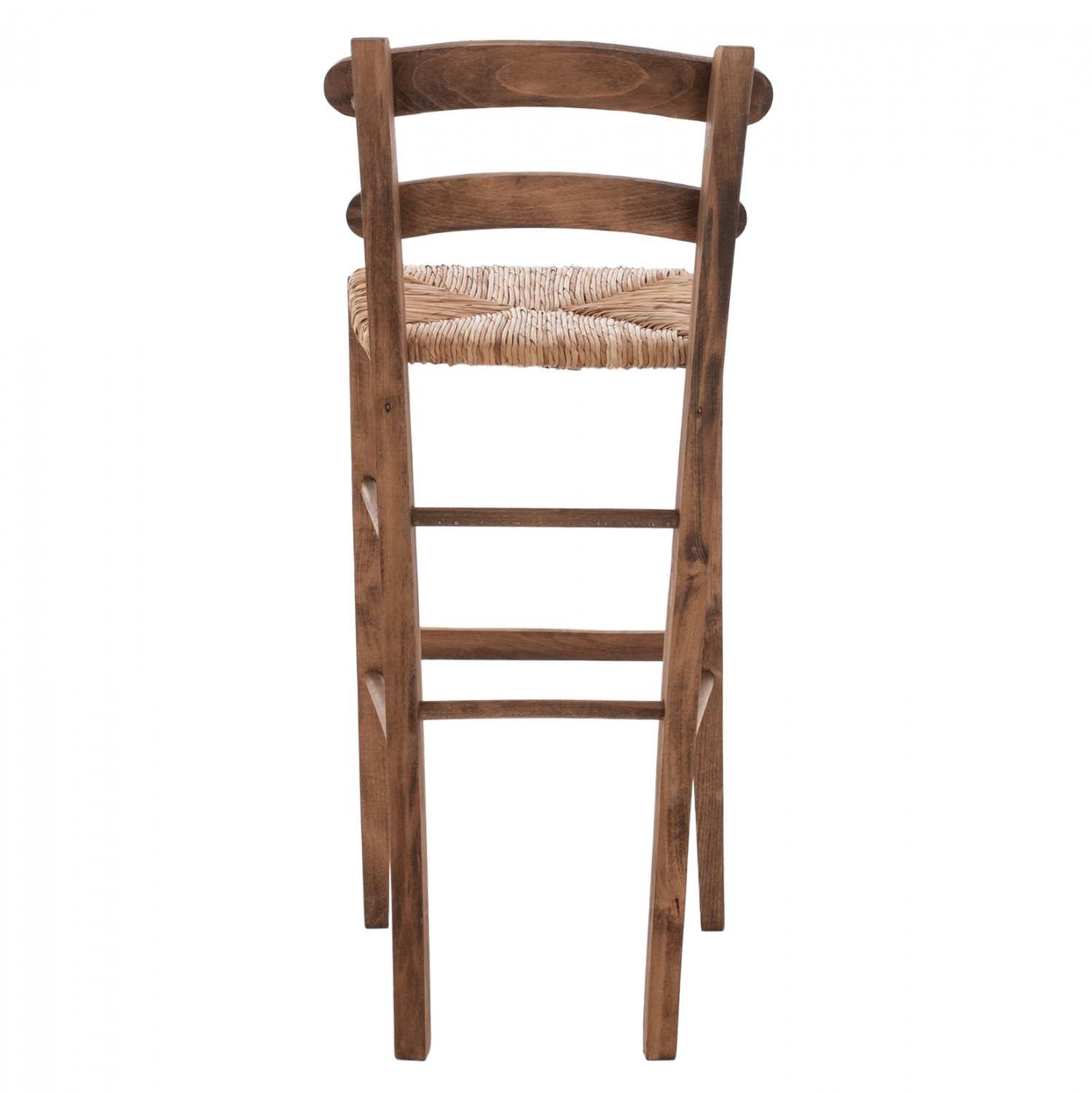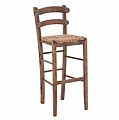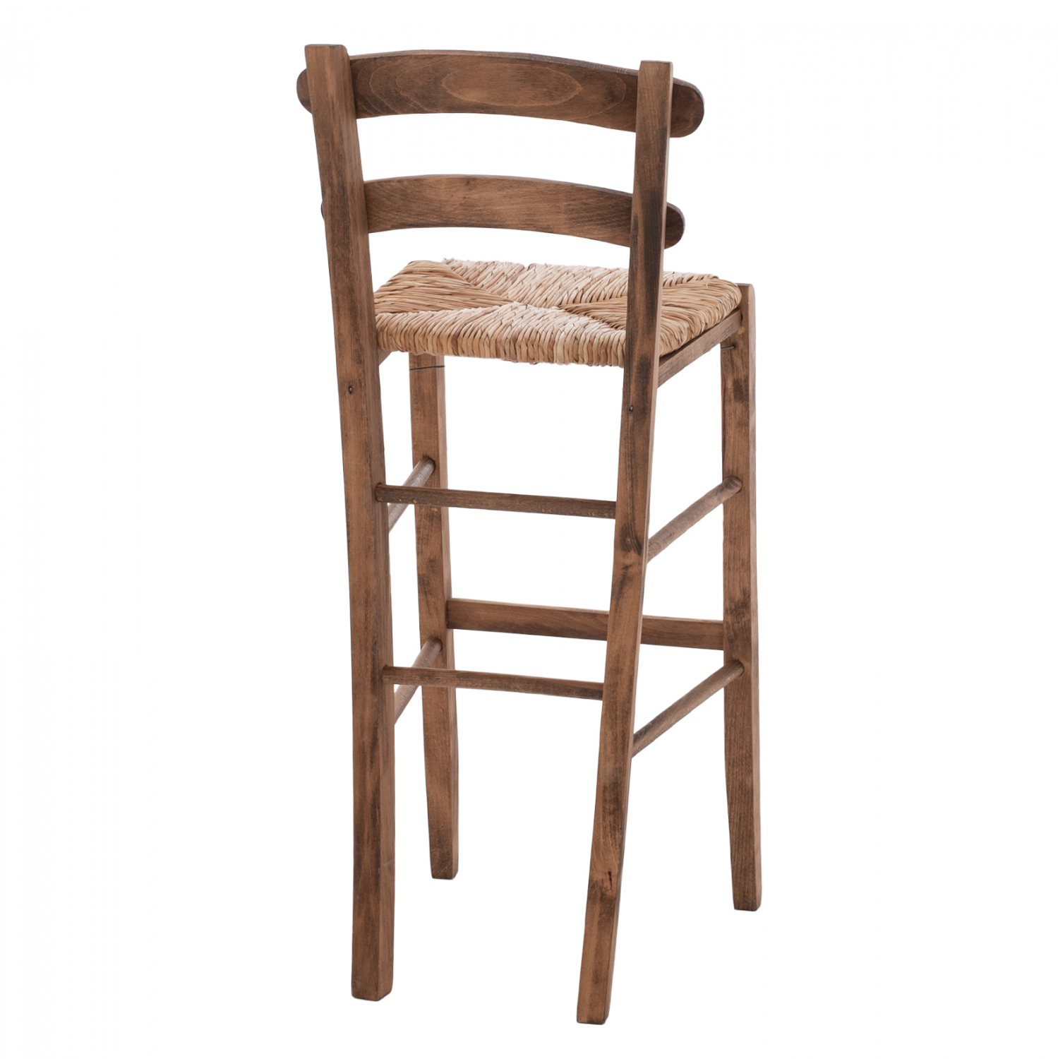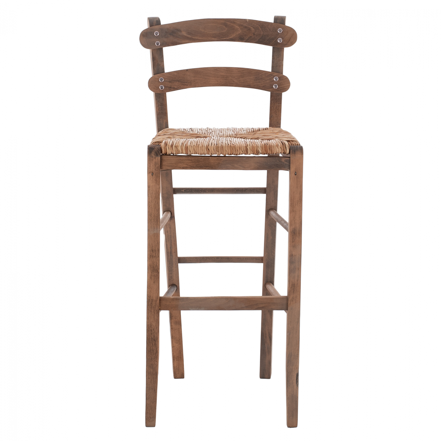 Σκαμπό καφενείου καρφωτό από μασίφ ξύλο φουρνιστής οξιάς εμποτισμού καρυδί και ψάθα.
