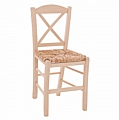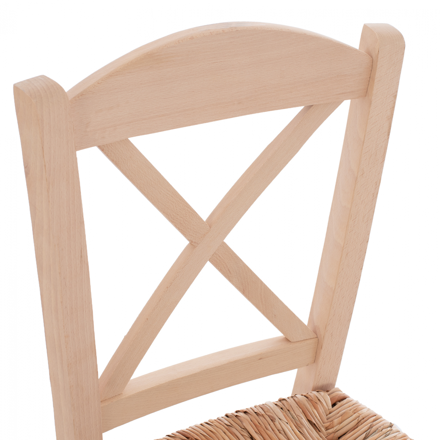 Καρέκλα καφενείου χιαστή από μασίφ ξύλο φουρνιστής οξιάς άβαφη και ψάθα.