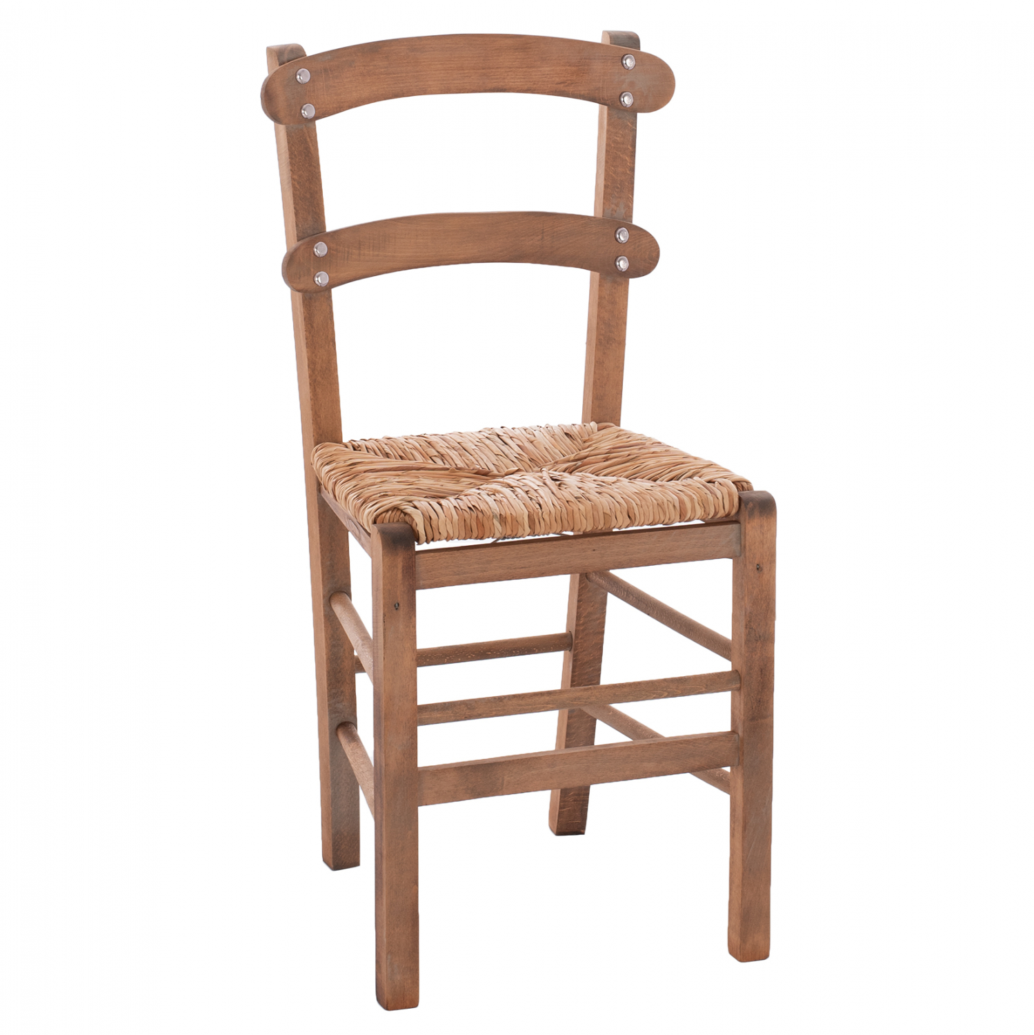 Καρέκλα καφενείου καρφωτή από μασίφ ξύλο φουρνιστής οξιάς εμποτισμού καρυδί και ψάθα.