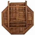 Το τραπέζι είναι από εξαιρετικής ποιότητας ξύλο ΤΕΑΚ. Το ξύλο ΤΕΑΚ είναι ο πιο δημοφιλής τύπος σκληρού ξύλου. Είναι χρώματος κίτρινο έως σκούρο καφέ, εξαιρετικά βαρύ, υψηλής αντοχής, ανθεκτικό στις καιρικές συνθήκες, ανθεκτικό στο σκέβρωμα και δεν αποσυντίθεται. Συχνά, τα νερά του ξύλου του είναι έντονα και σε ευθεία. Χρησιμοποιείται για πληθώρα κατασκευών εσωτερικού και εξωτερικού χώρου.