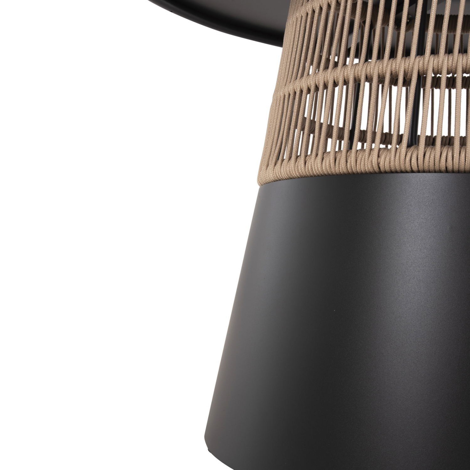 Το FB96106.01 είναι ένα στρογγυλό (στυλ ροτόντα) τραπέζι αλουμινίου σε ικανοποιητικές διαστάσεις σε ΑΝΘΡΑΚΙ χρώμα. Το τραπέζι στηρίζεται σε μια κωνική και κυλινδρική κατασκευή από ΑΝΘΡΑΚΙ αλουμίνιο και σχοινί σε ΜΠΕΖ χρώμα. Αυτό το τραπέζι θα αναβαθμίσει αισθητικά κάθε εξωτερικό επαγγελματικό χώρο, είτε ακόμα και στο σπίτι, ενώ μπορεί να ταιριάξει με πολλά διαφορετικά στυλ και χρώματα, όπως και με διαφορετικά στυλ καρέκλας.