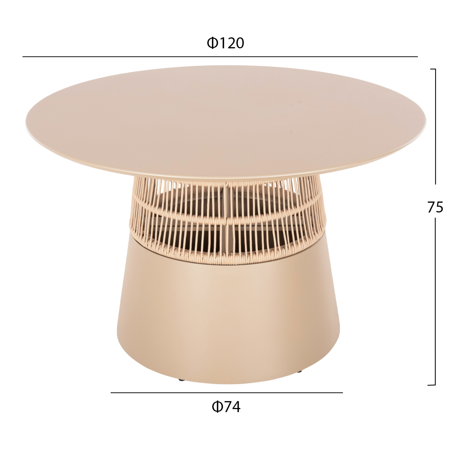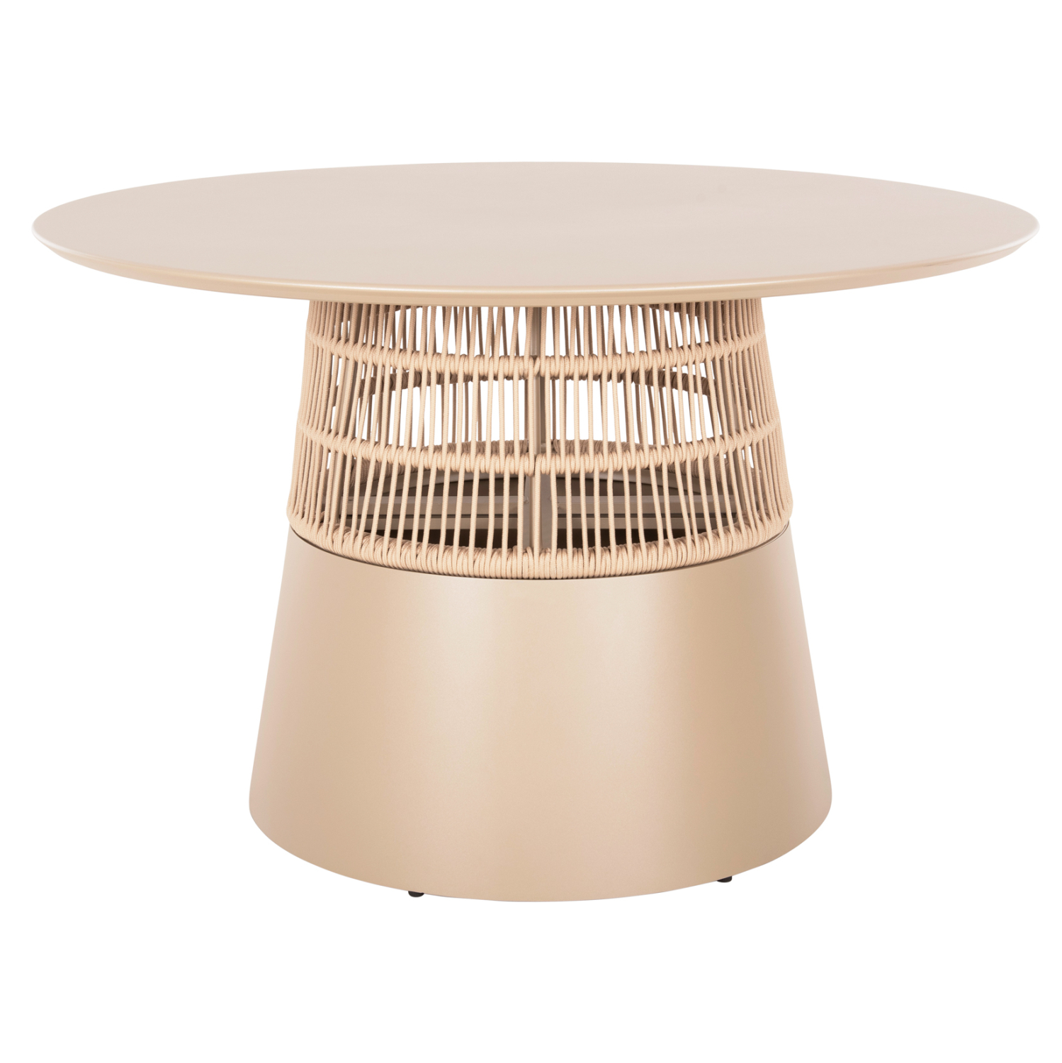 Το FB96106.04 είναι ένα στρογγυλό (στυλ ροτόντα) τραπέζι αλουμινίου σε ικανοποιητικές διαστάσεις σε ΣΑΜΠΑΝΙ χρώμα. Το τραπέζι στηρίζεται σε μια κωνική και κυλινδρική κατασκευή από ΣΑΜΠΑΝΙ αλουμίνιο και σχοινί σε ΜΠΕΖ χρώμα. Αυτό το τραπέζι θα αναβαθμίσει αισθητικά κάθε εξωτερικό επαγγελματικό χώρο, είτε ακόμα και στο σπίτι, ενώ μπορεί να ταιριάξει με πολλά διαφορετικά στυλ και χρώματα, όπως και με διαφορετικά στυλ καρέκλας.