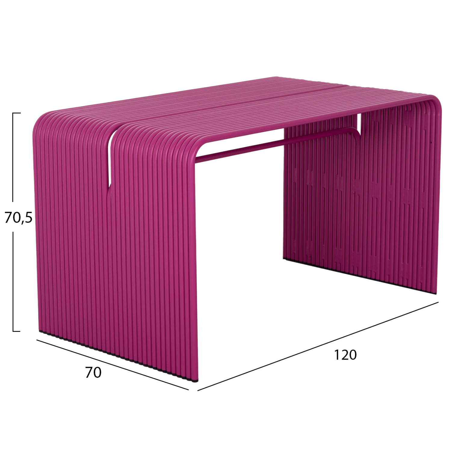 Το FB96330.05 είναι ένα πολύ ιδιαίτερο τραπέζι τραπεζαρίας κατασκευασμένο εξολοκλήρου από αλουμινένιες σωλήνες σε έντονο ΜΩΒ χρώμα, με πλαστικές τάπες στο κάτω μέρος των ποδιών. Μια μοναδική και μοντέρνα πρόταση για τον εξωτερικό χώρο!