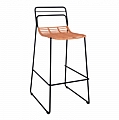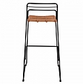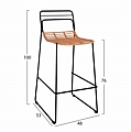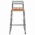 Μοντέρνο σκαμπό με πλάτη, εξωτερικού αλλά και εσωτερικού χώρου, κατασκευασμένο από μεταλλικό σκελετό σε μαύρη απόχρωση και πόδια από μασίφ σίδερο και επενδυμένο με πλεκτό wicker σε μπεζ απόχρωση.