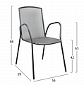 Τέσσερις πολυθρόνες μεταλλικές για εξωτερικό χώρο. Η βάση και το κάθισμα της καρέκλας είναι από μεταλλικό πλέγμα.