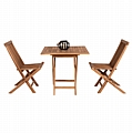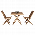 Το σετ τραπεζαρίας FB911951 για εξωτερικούς χώρους είναι πανέμορφο. Αποτελείται από ένα αναδιπλούμενο τετράγωνο τραπέζι κατασκευασμένο από ποιοτικό ξύλο στο ΦΥΣΙΚΟ του χρώμα με ικανοποιητικές διαστάσεις για τουλάχιστον 2 άτομα, και 2 αναδιπλούμενες καρέκλες της ίδιας σειράς. Ιδανικό τόσο για το σπίτι, όσο και για επαγγελματικούς χώρους!