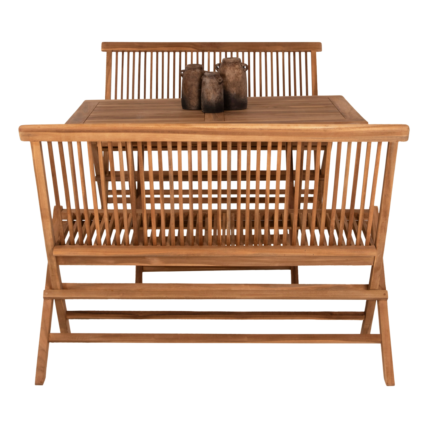 Το σετ τραπεζαρίας FB911952 για εξωτερικούς χώρους είναι πανέμορφο. Αποτελείται από ένα αναδιπλούμενο ορθογώνιο τραπέζι κατασκευασμένο από ποιοτικό ξύλο στο ΦΥΣΙΚΟ του χρώμα με ικανοποιητικές διαστάσεις για τουλάχιστον 2 άτομα, και 2 αναδιπλούμενα παγκάκια χωρίς μαξιλάρια της ίδιας σειράς. Ιδανικό τόσο για το σπίτι, όσο και για επαγγελματικούς χώρους!