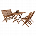 Το σετ τραπεζαρίας 4τμχ FB911953 για εξωτερικούς χώρους είναι πανέμορφο. Αποτελείται από ένα αναδιπλούμενο ορθογώνιο τραπέζι κατασκευασμένο από ποιοτικό ξύλο στο ΦΥΣΙΚΟ του χρώμα με ικανοποιητικές διαστάσεις για τουλάχιστον 4 άτομα, 1 αναδιπλούμενο παγκάκι χωρίς μαξιλάρια, και 2 καρέκλες αναδιπλούμενες, όλα από την ίδια σειρά. Ιδανικό τόσο για το σπίτι, όσο και για επαγγελματικούς χώρους!