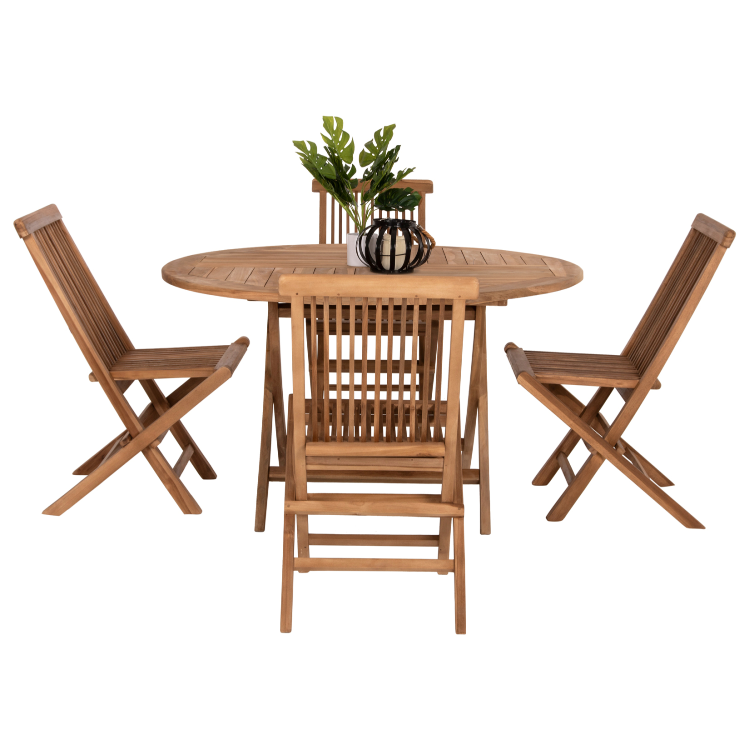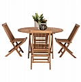 Το σετ τραπεζαρίας 5τμχ FB911956 για εξωτερικούς χώρους είναι πανέμορφο. Αποτελείται από ένα αναδιπλούμενο στρογγυλό τραπέζι κατασκευασμένο από ποιοτικό ξύλο στο ΦΥΣΙΚΟ του χρώμα με ικανοποιητικές διαστάσεις για τουλάχιστον 4 άτομα, και 4 καρέκλες αναδιπλούμενες, όλα από την ίδια σειρά επίπλων. Ιδανικό τόσο για το σπίτι, όσο και για επαγγελματικούς χώρους!