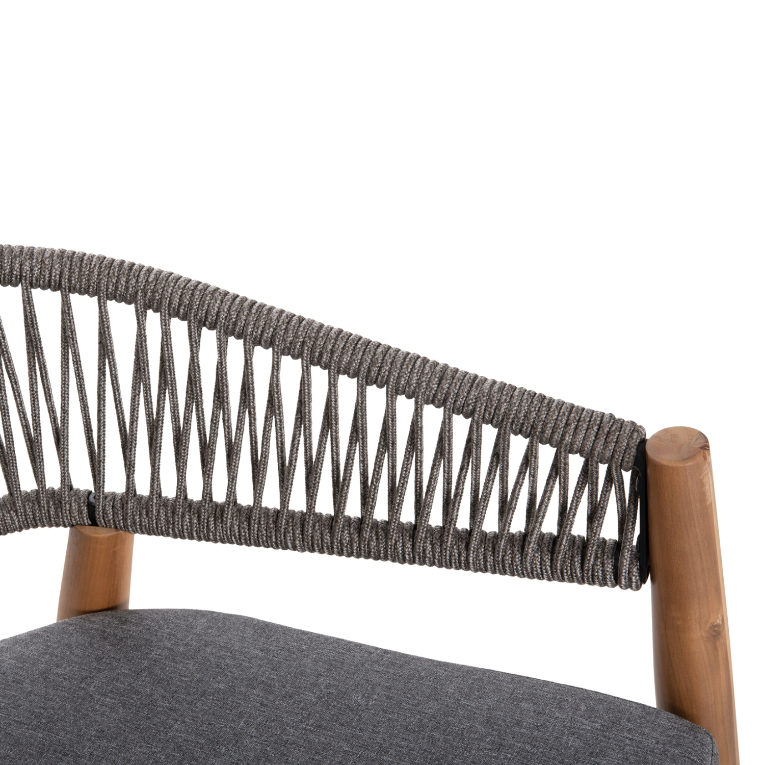 Το σετ είναι κατασκευασμένο από φυσικό μασίφ ξύλο ΑΚΑΚΙΑΣ. Οι καρέκλες έχουν nylon σχοινί στην πλάτη.