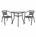 Το FB921112 είναι ένα σετ σαλονιού εξωτερικού χώρου σε ΓΚΡΙ χρώμα, με ημικυκλικό (μισό) τραπεζάκι με γυάλινη επιφάνεια και 2 αναπαυτικές μεταλλικές πολυθρόνες με κάθισμα και πλάτη από φέτες αλουμινίου! Ιδανικό σετ για μικρούς και στενούς χώρους, αφού το τραπέζι έχει την δυνατότητα να εφάπτεται σε τοίχους και κάγκελα, εξοικονομώντας χώρο!