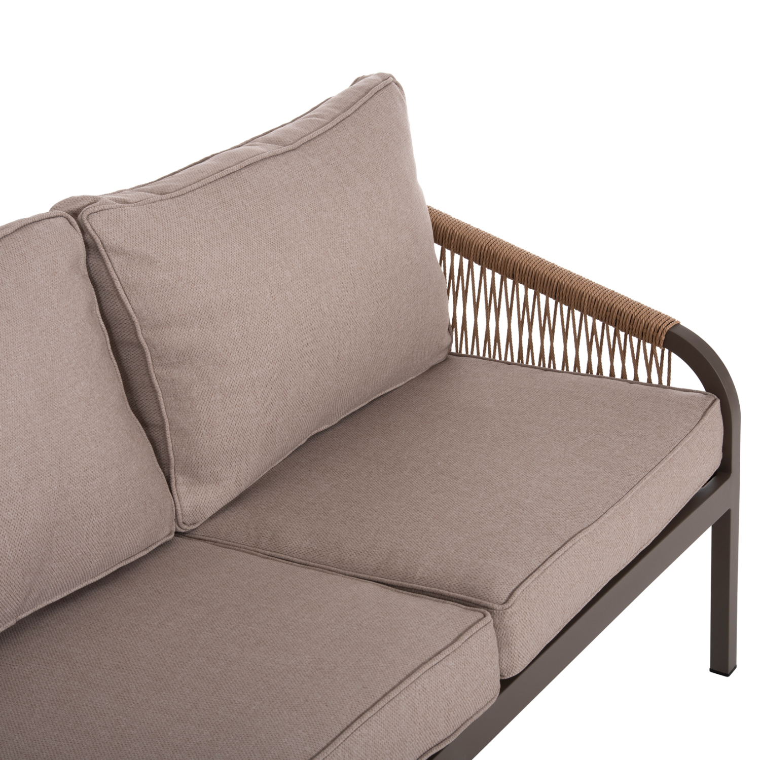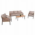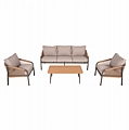 Σας παρουσιάζουμε το εντυπωσιακό και νέο σετ σαλονιού εξωτερικού χώρου FB96056.04 σε ΣΑΜΠΑΝΙ χρώμα, με τραπεζάκι, 2 πολυθρόνες και 1 τριθέσιο καναπέ. Ένα σετ που θα το λατρέψετε με την πρώτη ματιά. Ο σκελετός σε όλο το σετ είναι από αλουμίνιο επενδυμένο με συνθετικό σχοινί σε ΦΥΣΙΚΟ χρώμα. Το design τους είναι πανέμορφο στην όψη ενώ η στιβαρότητά τους είναι εμφανής. Το κάθισμά στον καναπέ και τις πολυθρόνες είναι φαρδύ ενώ η πλάτη τους αγκαλιάζει το σώμα πράγμα που επιτείνει την άνεση που προσφέρουν, σε συνδυασμό με τα αναπαυτικά μαξιλάρια τόσο στο κάθισμα όσο και στην πλάτη. Ο τριθέσιος καναπές σε παρόμοιο design είναι, όμως, το πιο εντυπωσιακό κομμάτι αυτού του σετ με τις μεγάλες διαστάσεις του που τον καθιστούν το σημείο αναφοράς. Τα μαξιλάρια σε όλο το σετ είναι επενδυμένα με πολυεστερικό ύφασμα σε ΜΠΕΖ χρώμα και διαθέτουν γέμισμα με μέτριας σκληρότητας αφρώδη υλικά για την μεγαλύτερη δυνατή άνεση, αλλά και φερμουάρ. Τι άλλο να ζητήσει κανείς για να αναβαθμίσει τον εξωτερικό χώρο της επιχείρησής του;