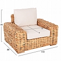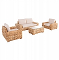 Αυτό το σετ-σαλόνι εξωτερικού χώρου αποτελείται από έναν 2-θέσιο καναπέ, 2 πολυθρόνες και ένα ορθογώνιο τραπεζάκι με επιφάνεια από γυαλί ασφαλείας. Ο καναπές κι οι πολυθρόνες διαθέτουν αναπαυτικά μαξιλάρια σε ΛΕΥΚΟ χρώμα τόσο στο κάθισμα, όσο και στην πλάτη, τα οποία έχουν φερμουάρ για εύκολη αφαίρεση των καλυμμάτων. Ο σκελετός όλου του σετ είναι από ξύλο mango με επένδυση φυσικό Rattan σε πλέξη, που δίνει μια όμορφη και πολυτελή εικόνα στον χώρο σας.