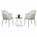 Το FB921107.06 είναι ένα lounge σετ (σαλονάκι) 3τμχ εξωτερικού χώρου, που αποτελείται από 2 πολυθρόνες αλουμινίου κι ένα στρογγυλό μεταλλικό τραπεζάκι, όλα σε χρώμα ΦΥΣΤΙΚΙ. Τα μαξιλάρια καθίσματος στις πολυθρόνες είναι σε γκριζωπή απόχρωση.