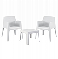 Ένα τετράγωνο τραπεζάκι και 2 στοιβαζόμενες πολυθρόνες, τα οποία είναι εξολοκλήρου κατασκευασμένα από πολυπροπυλένιο σε ΛΕΥΚΟ χρώμα. Σχεδιαστικά, είναι λιτό και μπορεί να χρησιμοποιηθεί με πολλούς τρόπους προσφέροντας πρακτική και ανθεκτική χρήση. Ιδανική πρόταση για χρήση σε εξωτερικούς χώρους, είτε επαγγελματικούς (χώροι δεξιώσεων, εταιρείες catering, κλπ.) είτε για το σπίτι.