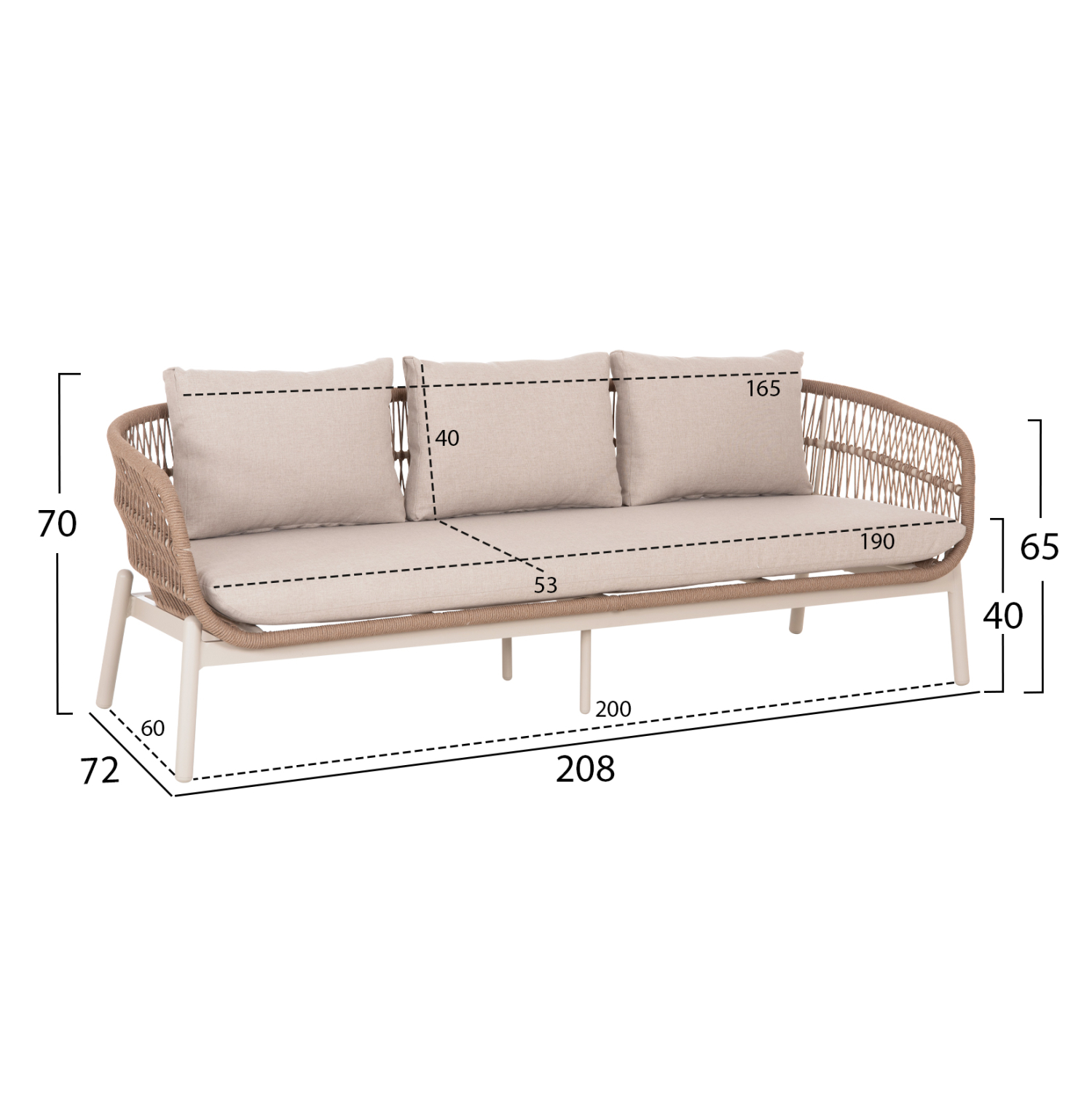 •Καναπές: 208x72x70Υ εκ.