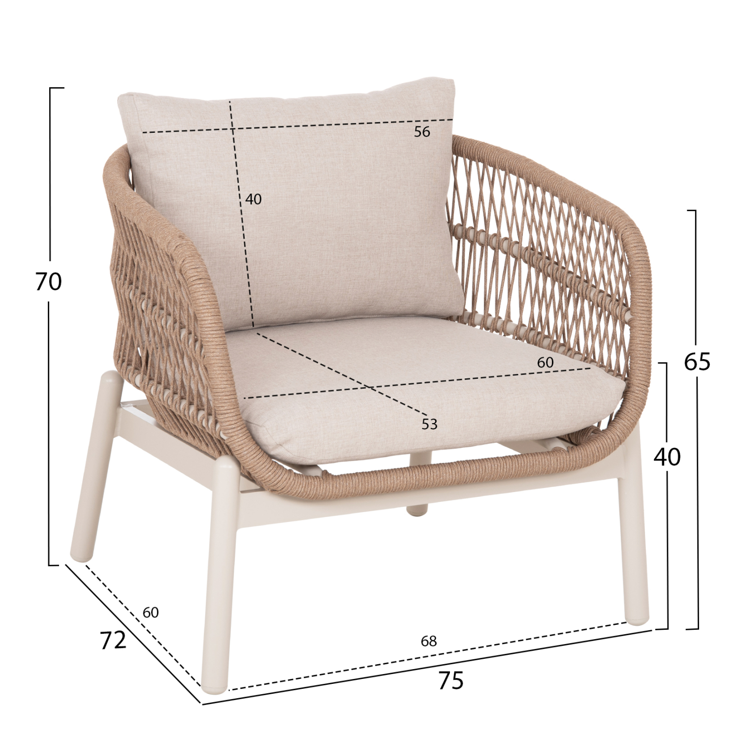 •Επένδυση πλάτης με σχοινί σε απόχρωση apricot διαμέτρου Φ5mm για μοντέρνο αποτέλεσμα και άνεση.