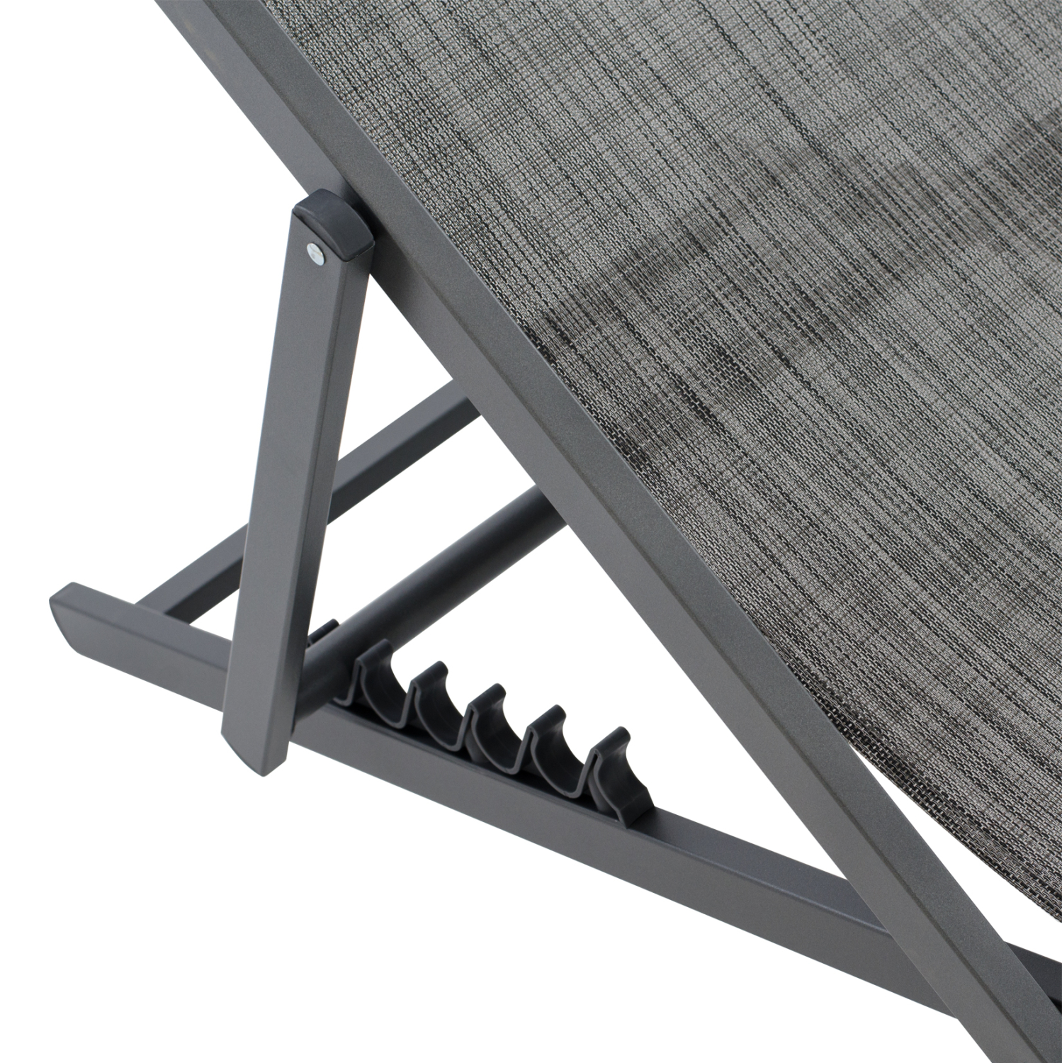 Η συγκεκριμένη, έχει κλασσικό σχεδιασμό με πλάτη που στηρίζει το σώμα και με εξτρά μαξιλάρι για το κεφάλι και σκαλιέρα 5 θέσεων. Το χρώμα της είναι ΓΚΡΙ τόσο στον σκελετό, όσο και στο textilene.