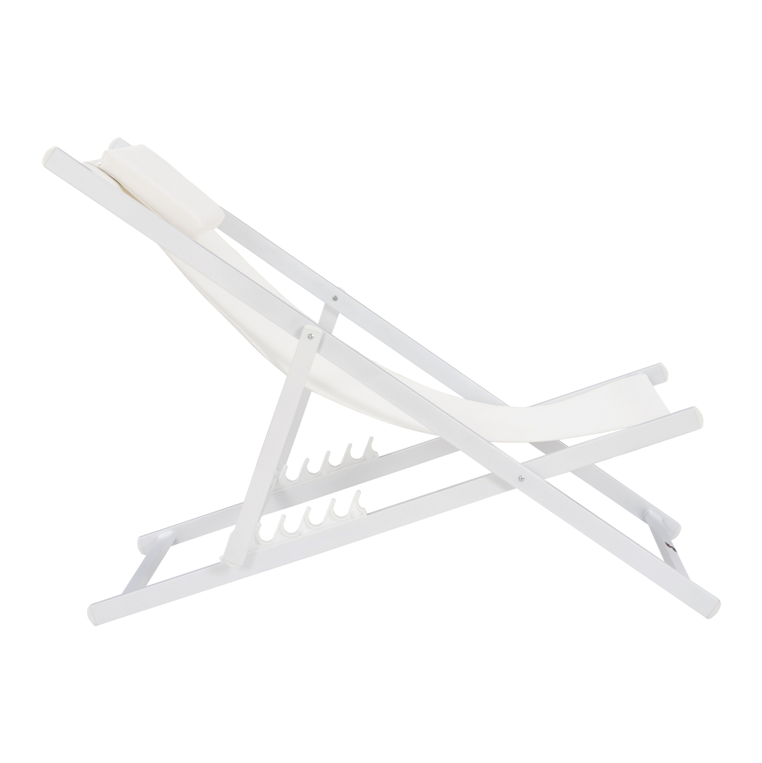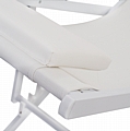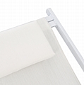 Η συγκεκριμένη, έχει κλασσικό σχεδιασμό με πλάτη που στηρίζει το σώμα και με εξτρά μαξιλάρι για το κεφάλι και σκαλιέρα 5 θέσεων. Το χρώμα της είναι ΛΕΥΚΟ τόσο στον σκελετό, όσο και στο textilene.