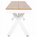 Το παγκάκι εξωτερικού χώρου FB96038.02 έχει σκελετό αλουμινίου σε ΛΕΥΚΟ χρώμα, με δύο χιαστί βάσεις ενωμένες με μια οριζόντια φαρδιά ράβδο. Η επιφάνεια του καθίσματος είναι κατασκευασμένη από δύο πλάκες polywood σε χρώμα ΦΥΣΙΚΟΥ ΞΥΛΟΥ. Οι πλούσιες διαστάσεις του που άνετα βολεύονται 3 άτομα, το καθιστούν όμορφη και πρακτική προσθήκη για πληθώρα χρήσεων τόσο στο σπίτι, όσο και σε επαγγελματικούς χώρους.